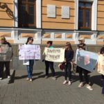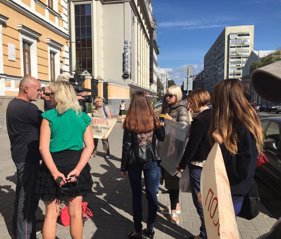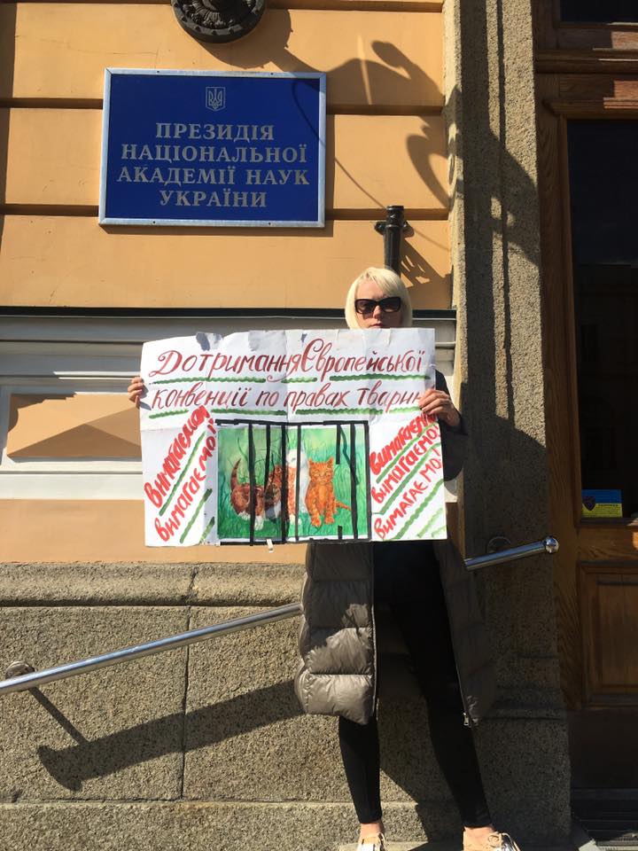 Активісти прийшли під гаслом “Шкуродерам не місце в науці”, вимагаючи звільнити одіозну співробітницю.