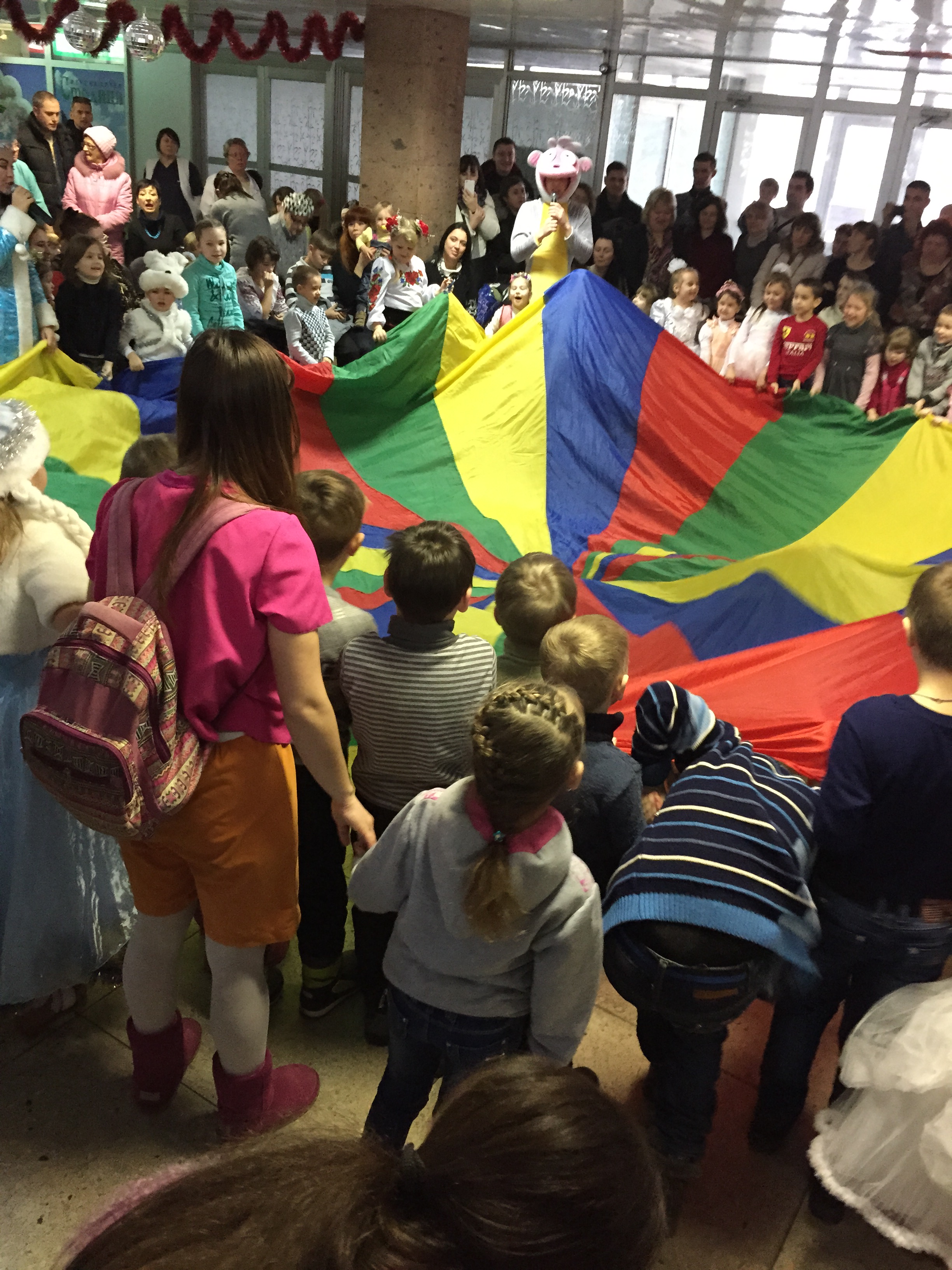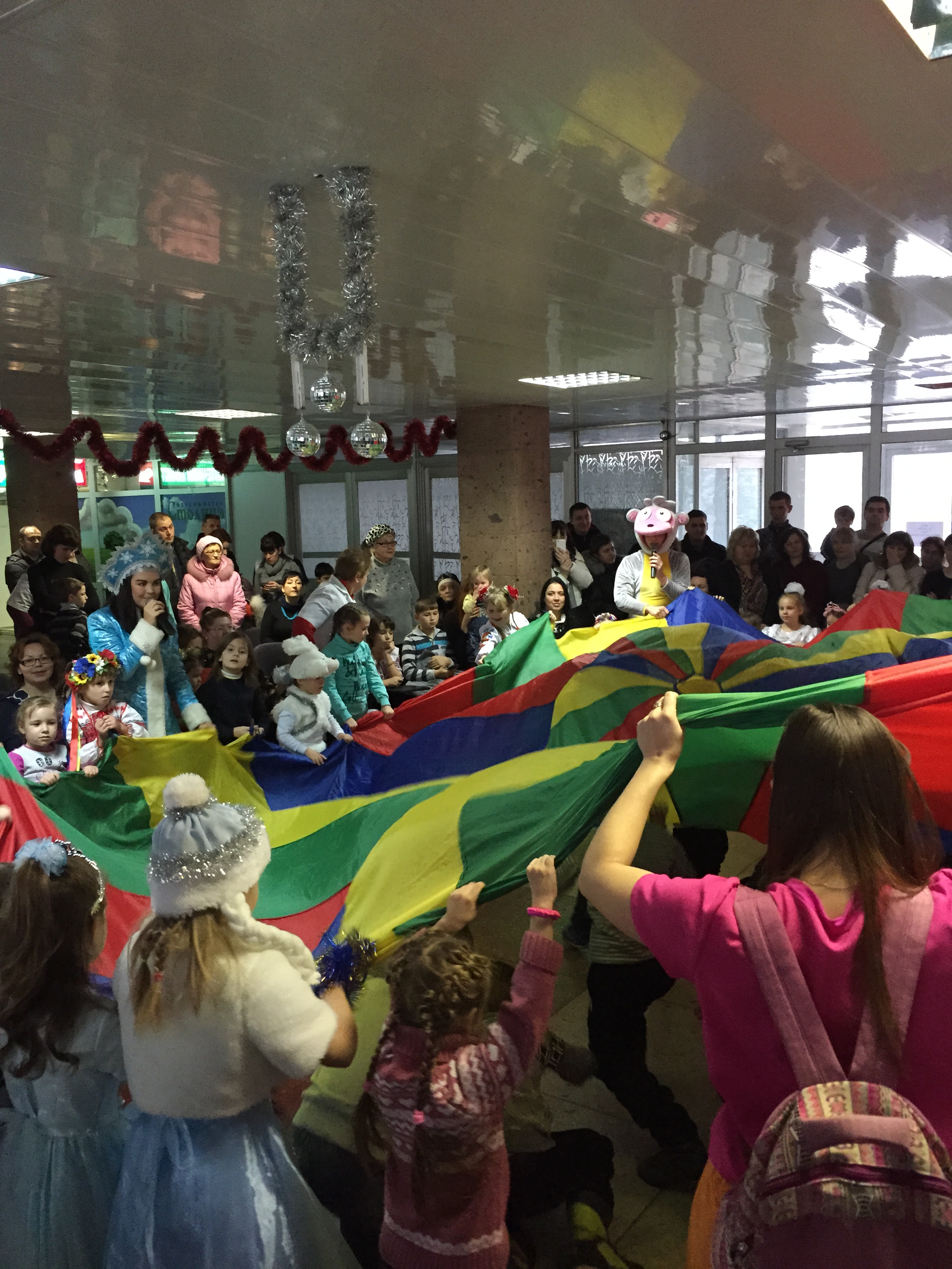 Програма проходила протягом двох днів по кілька годин на день, в результаті ми зуміли ощасливити кілька десятків дітей різного віку, допомагаючи їм зануритися в атмосферу свята і радості.
